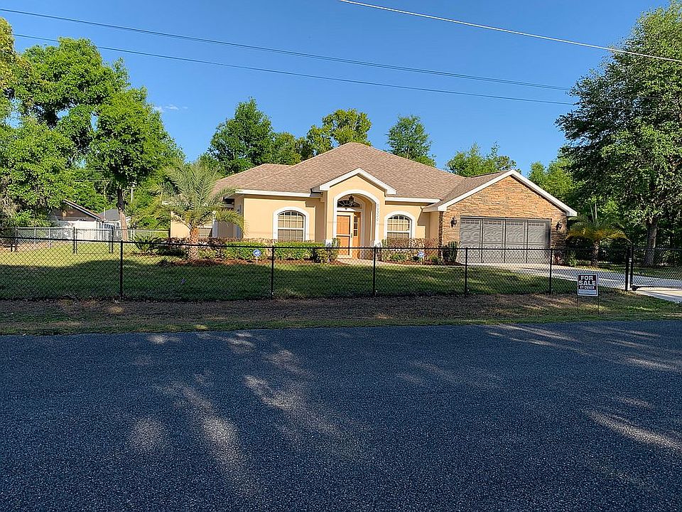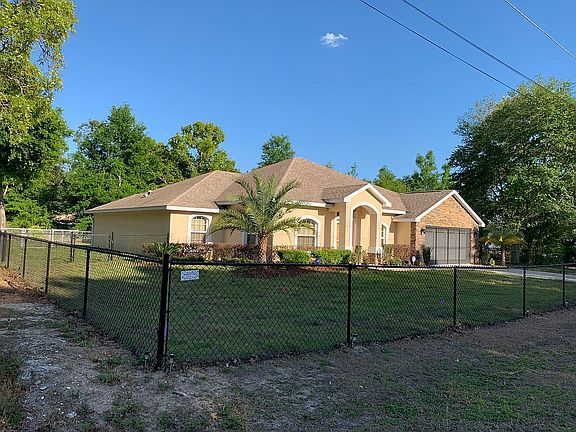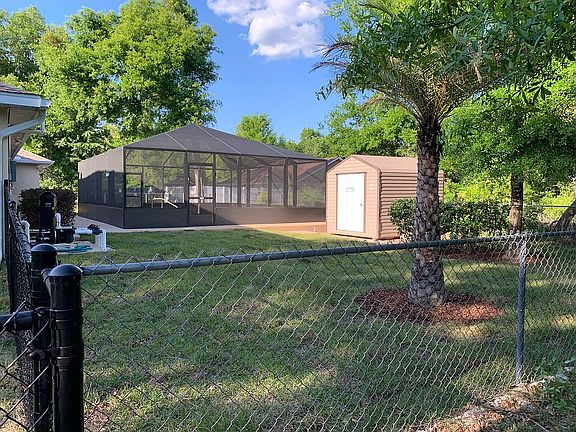 Spacious 3 bedroom 2 bathroom with a den and 2 car garage. Tile throughout entire main living areas, laminate flooring in master bedroom, and carpet in both spare beds and den. Walk in closet in the master bedroom and through the master bathroom. Large walk-in shower in master bathroom and shower tub in second bathroom. Washer and dryer are included. In ground pool with salt system, solar heat and screen enclosure, plus an 8x10 shed. Entire lot is fully fenced with a gate for the driveway. Close to The Villages. Please contact (352)250-1699 for more information. Will work with buyers agent in regards to commission.