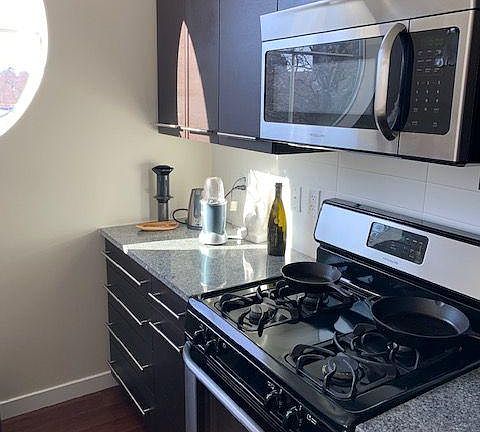 7 month rental term! Oversized and updated 1 br in luxury midrise bldg in the heart of downtown Stamford! Gourmet eat in kitchen w/ high end cabinetry, granite countertops, stainless steel appliances- gas stove, dishwasher, microwave, breakfast bar that opens into sunfilled living area w/ walls of glass and panoramic downtown views! large bedroom w/ walk in closet, luxurious modern bathroom, gleaming hardwood floors, roof top deck w/ grills/ patio furniture, professional gym, clubroom, garage parking avail, pet ok, walk to train, shops, nightlife, minutes to highways and beaches- low security deposit, 7 month rental- Owner pays for 24 hour emergency maintenance
