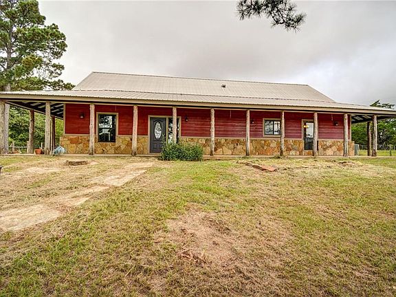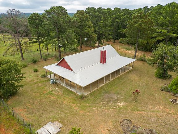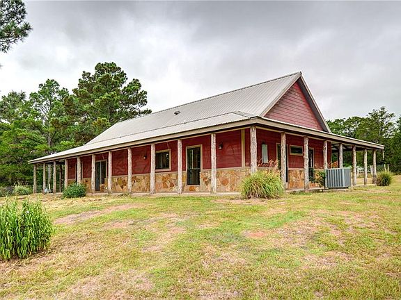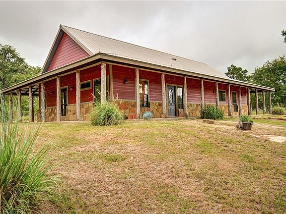 Private gentlemen ranch with easy access to Hwy 71 or 290. Heavily wooded with old Pines, home features metal roof, stone fireplace, stained concrete floors, tongue and groove Pine ceilings in living area, open kitchen concept, breakfast bar, double oven, cooktop. Master suite includes large tub with separate walk-in shower. Multiple sets of french doors that provide ample natural light accessing wrap around covered porch. Homesite is completely fenced. Pole barn is blank canvas for new owner.