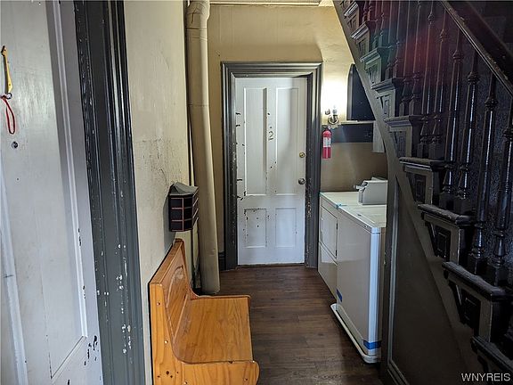 Well kept 3-unit building with coin-op laundry, updated electrical system (2022), 1 new hot water tank (2022), 1 new furnace (2023), updated kitchen and flooring, newer roof, and glass block windows. Existing appliances included in sale, Vacant master unit with two tiered living arrangement. Lots of parking around building.