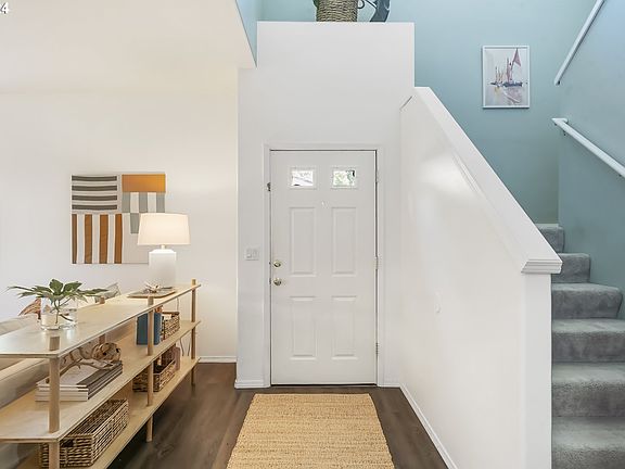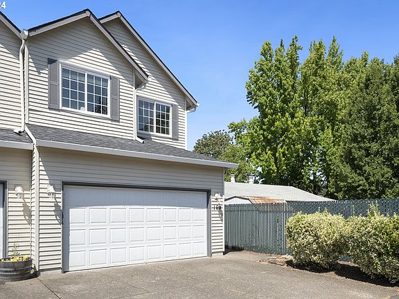 Marvelous opportunity to live in the heart of Gladstone in a well kept 3 bedroom 2.5 bath attached home that is as stylish as it is practical. This cul-de-sac community is made of up duplexes, with each home sharing only one wall with a neighbor. For the amount of space, bedroom and bathroom count and private back yard, this is the best deal in Gladstone! The main floor flow makes sense and it's easy to move around between the open living room, kitchen and dining area. High ceilings and a vaulted entry-way offer an airy feel to the space. The sliding door off the dining area opens to a private little oasis. Upstairs are 3 bedrooms including a gigantic primary suite. With a double car garage and driveway, there is plenty of off street and secure parking here. The roof is only 2 years old, the property taxes are low, and HOA dues are very reasonable.