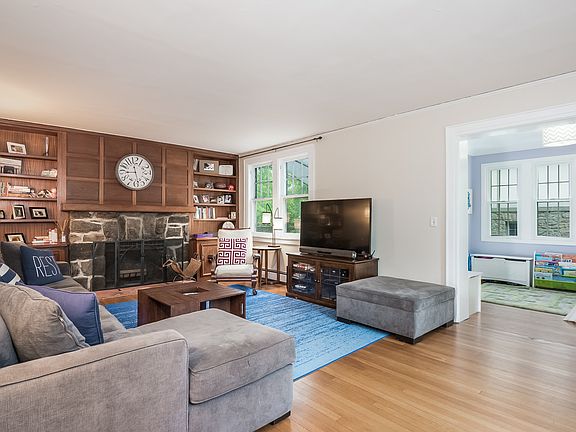 Gorgeous, Classic, Brick Center Hall Colonial, with tremendous curb appeal and just a short walk to train, schools, shops and restaurants. Details abound with mahogany built-ins around the fireplace in the large living room. Sunny play room or sitting room with french doors to the lovely and private large terrace overlooking the backyard. Large, formal dining room off the equally large eat-in kitchen. Four generous sized bedrooms all on one floor with an updated hall bath. Master bedroom with double vanity, glass shower, walk-in closet and private door to yet another terrace.