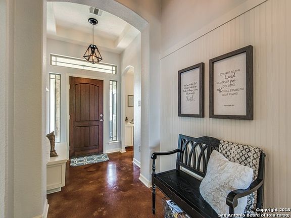 Lovely 1 story home walking distance to downtown Boerne. Open floor plan w/ fantastic island kitchen. White cabinets, granite counters, SS appliances. Stone fire place in the family room. Large dining room and spacious bedrms. 4th bedrm could be a study. Beautiful master suite/bath. Great sized covered patio perfect for entertaining. Shaded back yard w/ built in fire pit. Home is impeccably maintained. Relaxed, coastal vibe. Neighborhood backs to Old #9 Trail and just a couple blocks from the Main St Plaza.