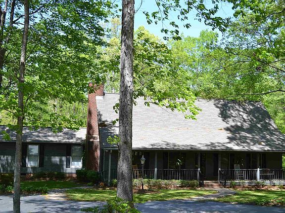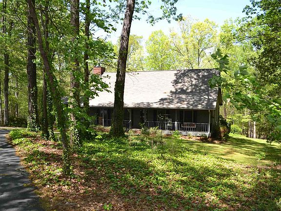 Looking for a home nestled in the midst of private acreage? Look no more! This home and property fulfills what most folks dream of! So much to experience in the great outdoors before even entering this lovely home. Enter through the open gate/fence on black top circular driveway, to arrive at the welcoming country porch, around back there is a pool, large deck, stone fire pit, rippling creek, hunting cabin (w/kitchen) , w/ lean to's for boat or tractor storage. Inside you'll find a fabulous open floor plan perfect for family, large gatherings & entertaining. Living Room boasts vaulted ceiling, beautiful stone fireplace, & flows to the kitchen, eat in bar, & dining room. A wall of windows provides tons of natural light and lovely views of the private acreage out back. Love cooking? This kitchen has 2 stainless ovens, large gas countertop range w/multiple eyes, walk in pantry, hardwood floors, & eat in bar area. Step out of the kitchen onto the back steps or a spacious screen porch. This home has 4 bedrooms, 3 on the main level and 1 with a private upstairs suite w/full bath & large walk in closet. Owner's suite features vaulted ceiling, sitting area, picture window overlooking backyard, and private bath w/ whirlpool and separate shower. Owner's bath has updated dual vanity, mirrors and fixtures. This one owner home has been well loved and maintained, and ready for a new family.