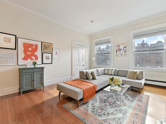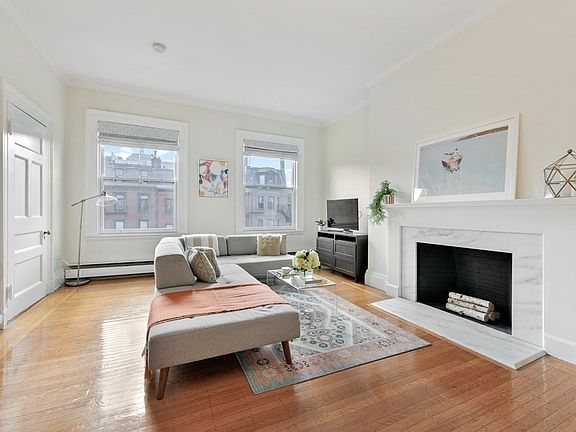 Quintessential sunny 1 bed/1 bath front facing condo in prime Back Bay brownstone. Enter on Beacon Street into a spacious foyer w/ period staircase, or take the elevator to a spacious open concept living area centered around an oversized Italian marble fireplace. Direct southern exposure beams natural light through 2 large updated windows offering views of the Hancock Tower. There is ample space for a full-size sofa and home office. A dining area easily accommodates a table for 4, leading into the renovated kitchen featuring high end S/S appliances & granite counters. The primary BR hosts a large window w/ custom shades & walk-in closet w/ built-ins. Newly renovated en-suite bath w/ large frameless glass shower & rain head. This home is complete w/ 10 ft ceilings, impeccably maintained period details, oversized fireplace, HW floors throughout, an elevator & common laundry. Live moments to Copley Square, Boston Common, Newbury St & The Esplanade. No pets allowed per association by-laws
