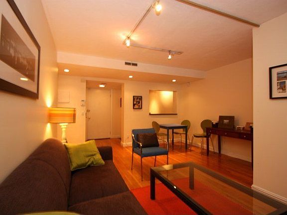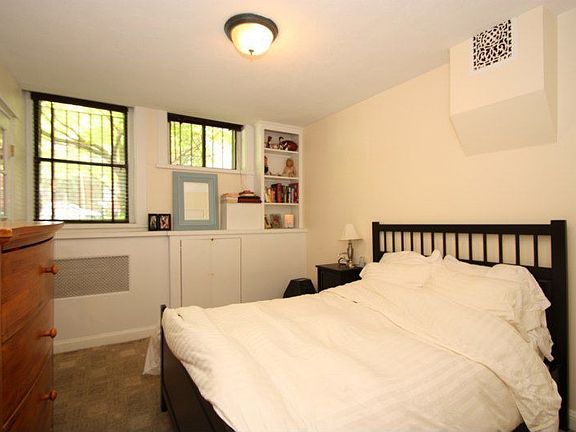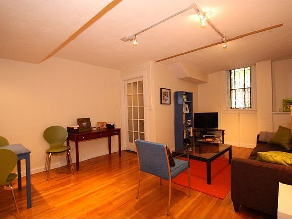 Sunny, spacious immaculate 642 sq ft one bedroom Garden Level Condo with pass through kitchen, gleaming hardwood flooring in living room & dining area; Cherry Cabinets and newer appliances in Kitchen; Granite in Kitchen, Bath, AND Foyer; Large bedroom; option with room divider to separate large great room into additonal sleeping area. Bedroom, linen, walk in closets PLUS additional storage. Low Condo Fee (INCLUDES HEAT, gas for range,hot water, etc) magnificent block between Berkeley & Clarendon.