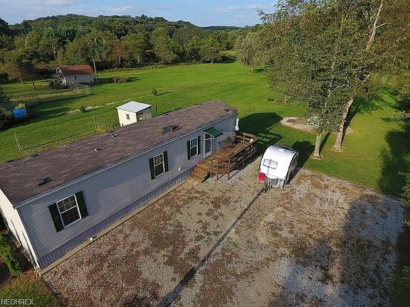 Impeccably maintained 2008 2 bedroom Fleetwood Mobile home on 2 acres and less than 2 miles from Atwood Lake. Why camp when you can own your own little peace of paradise and be so close to the 1540 acre Atwood Lake, Marina East and every day needs in Dellroy. The property backs up to 80 wooded acres so you will enjoy the serenity of deer, wild turkey and other wild life in your back yard. There is even a frog pond to the back of the property along with a creek bed that runs through as well. A 10x12 storage shed provides great storage and the sellers are including a 50" Cub Cadet Riding Mower and a push mower for the new owners. Inside the home you will not be disappointed as it has been extremely well cared for and feels new. A spacious eat in kitchen overlooks the back yard and is open to the living room. Appliances will remain with home. The home has a new Central A/C unit. A poured concrete pad provides a good foundation for the home. You will love the quaint party shed and deck overlooking the beautiful back yard. A new fire ring is in place to enjoy camp fires and starry nights. Water softener and R/O system is installed for water treatment. Small fenced in area for garden. Whether you are looking for an affordable weekend getaway, investment property, hunting destination or an affordable year round residence this property is a great fit. Be sure to view the 3D virtual tour and call for a personal showing today!