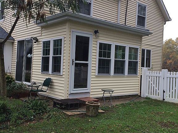 Older home in a very quiet, safe area. Refinished hardwood floors downstairs, carpet upstairs. New custom built closets added upstairs. Repainted interior. Most windows replaced. New roof June 2013. 1st floor eat in kitchen expanded and updated in 2017, with sliders to brick patio, also dining/office, and living room. Powder room in 1st floor in sunroom, patio and large fenced play/dog area in private back yard. Partially finished basement for storage. 2nd floor has 3 bedrooms and full bath. Pull down attic stairs. 2 car detached garage, w/workbench, asphalt driveway, and shed in yard. Central air, water conditioner, natural gas, hot water baseboard heat. Neighborhood Description Rural area, very quiet, very safe. Not much traffic, good neighborhood. Faces farm preserved field across the street.