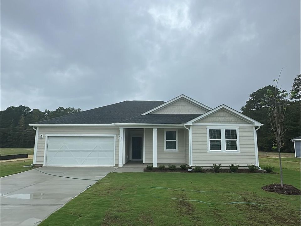 Enjoy the ease of single-level living on a spacious homesite—this inviting ranch home offers open living areas, a large lot perfect for outdoor gatherings, and a long driveway with room for every guest. Designed for comfort, connection, and everyday convenience, where you will be welcomed and feel invited to stay. This thoughtfully crafted floorplan includes a bright family room, dining nook, and a stylish kitchen with granite countertops, stainless steel appliances, and an optional island — perfect for both everyday living and entertaining. The private owner's suite features a deluxe bath with a tiled shower, Silestone vanity, and spacious walk-in closet. Two additional bedrooms and a secondary bath provide comfort and convenience for family or guests. Situated on a rare .765-acre homesite, this home gives you the freedom to create the backyard of your dreams — whether it's a garden, play space, or outdoor entertaining area. Additional highlights include a screened patio, 9' ceilings, energy-efficient Whirlpool appliances, and quality finishes throughout. Conveniently located in the Turkey Ridge community near I-40, this home offers an easy commute to Raleigh, Clayton, and Smithfield while still providing the privacy and space of a large lot.