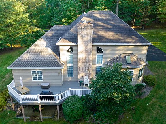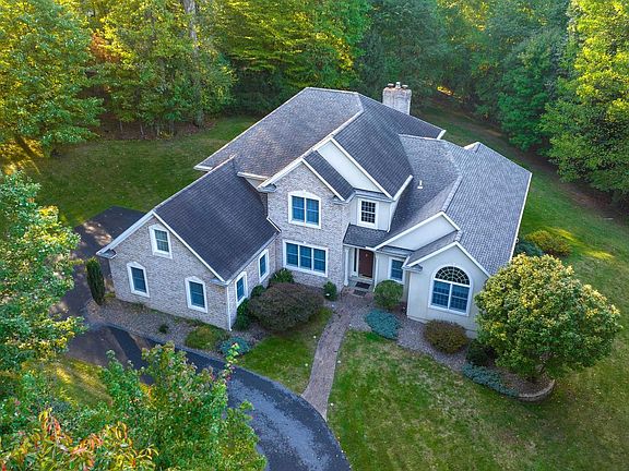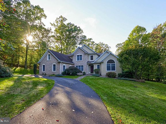 High-Quality, One Floor Living on Wooded 4+ Acres Simultaneously enjoying the peaceful openness of a sprawling 4.61 acres and the intimacy of a private wooded surround, this Elite Home Builders home eludes modern luxury and elegance. Located in a small development backing up to Manor Golf Course with a stone pillar entrance and a long, private, wrap-around driveway, the beautiful brick and vinyl facade is a warm welcome to every guest. Enter the covered front entry with ornate sidelights, youre greeted by the impressive 2-story foyer with crown molding, an automatic height-adjustable chandelier, and gorgeous hardwood flooring that flows throughout the main level. Through the oversized, arched doorway is the elegant dining room with a large front window and crown molding. On the other side, a glass door leads to the large office, brightened by a big picture window and cathedral ceiling. The grand 2-story great room is a show-stopping entertainment hub, boasting a soaring height ceiling, radiant heat hardwood floor, a gorgeous gas fireplace with insert and decorative molding surround, bold crown molding, recessed lighting, and Schubert built-in entertainment system. An open flow makes hosting a breeze with the adjacent kitchen area, featuring tile flooring w crack protection subflooring, a center island, breakfast bar, oak cabinetry with maple interiors, vegetable sink, stainless steel appliances, including a Vikings gas range, built-in dishwasher, fresh water tap, skylight, breakfast room with skylight, several windows, and access to an awesome raised back deck, plus a Butlers pantry with electric. The spacious first floor Master is highlighted by a double door entry, large linen closet and walk-in closet with window, crown molding, and direct access to back deck, while the luxury Master bath has tile floor, a double vanity with built-in cherry cabinetry, Whirlpool tub, walk-in shower with tile & glass surround, recessed lighting, and a pocket door entry. Upstairs, three additional bedrooms share a full bathroom with double vanity; all enjoying ceiling fans and carpeting, while the second bedroom has an awesome bonus room for work or play. Downstairs, the massive unfinished lower level has high ceilings, poured concrete, a workshop space with wash bin sink, full bath with walk in shower, and French door walkout to a small patio.