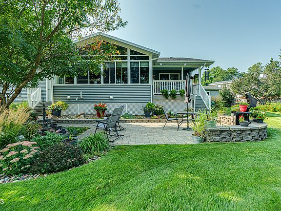 Located in an established NW Bismarck neighborhood this ranch style home offers a sense of serenity from the outside but reveals a spacious and inviting interior. As you pull into driveway you will notice the newer concrete driveway and the eye-catching curb appeal. Upon entering the home, you will immediately be drawn to the sunroom, a captivating space filled with an abundance of windows that flood the room with natural light. This sunroom serves as the heart of the home with a cozy fireplace and offers views of the picturebook yard that surrounds the property. A paver patio with a waterfall adds to the serenity of the outdoor space, making it an ideal spot for relaxation and outdoor gatherings. The sunroom, with its panoramic windows and access to the backyard, stands out as the favorite spot. There are Patio doors that open to a maintenance-free deck, expanding the outdoor space and allowing for effortless indoor-outdoor entertaining.