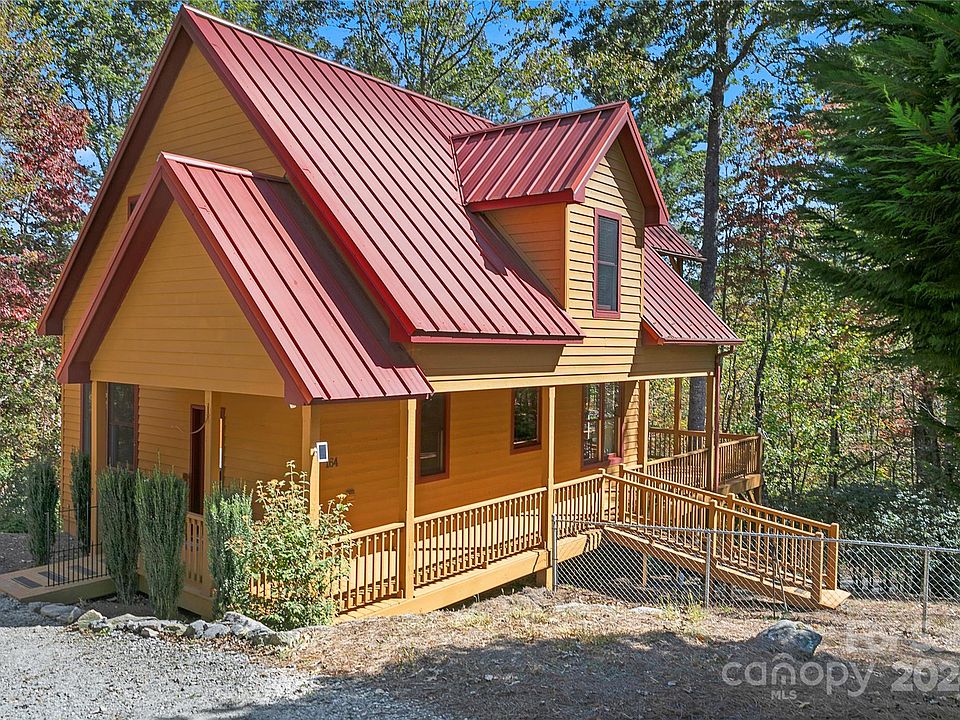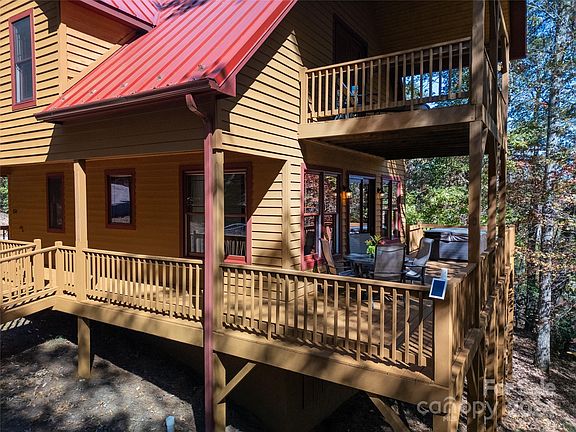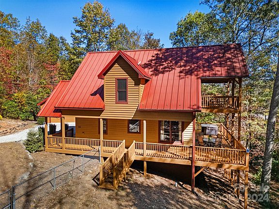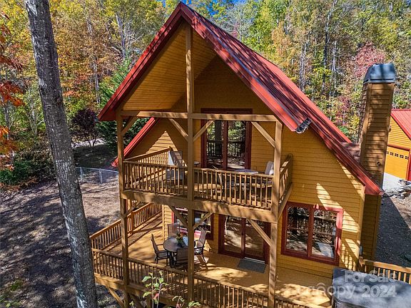 Rarely available cabin in the quaint subdivision of Cabins at Cantrell Mountain. Quality built light-filled cabin in the woods, just freshly painted with 3 coats of Elements Guard. Soaring tongue and groove ceilings in upper loft area. Loft area can be used as extra sleeping space for guests. Lots of interior storage space. Whole house sediment filtration system and whole house surge protector. No short term rental restrictions! 624 square feet of exterior decking and covered porches. Chain link fenced yard with ramp down to yard. Wood burning fireplace and included Maxx theurapuetic hot tub. Fully finished and insulated double car 24 X 24 detached garage. Walk out crawlspace for storage and easy access. Honeywell ProSeries thermostat. Some furnishings available for sale. Located just 10 minutes to DuPont State Forest and 10 minutes to Brevard. The quintessential cabin in the woods!