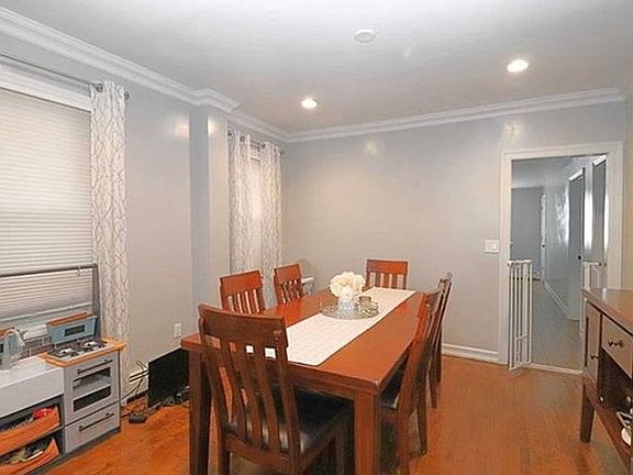 Welcome home to this charming two family. This home has it all; 5 bedrooms, 3 full baths, nice backyard space to entertain and beautiful original hardwood floors throughout. Upon entering the first duplex unit you will find a sun-drenched first floor featuring a comfortable living and dining room space, 4 year newer eat in kitchen with shaker cabinets, quartz countertops, island and full bathroom, along with the full finished basement with laundry area, full bathroom, bonus room and storage. The second units layout is similar to the first unit offering a 2 year new remodeled large duplex and finished bonus space on the third floor with 2-3 additional rooms! All separate utilities! Conveniently located next to transportation, shopping and parks. 1 block away from the bus stop on Belgrove to commute into NYC. Come see this Today!