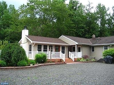 A Woodland Retreat and Gardener's Delight! If you want land solar energy ponds gardens and a well maintained home you owe it to yourself to check this home out! A long gated driveway leads you back to a tranquil setting full of surprises on this 2.34 acre lot. Inside this 3 bedroom 1 bath 1700+ sq.ft.rancher you'll find quality and pride of ownership. The living room has a coat closet carpeting and plenty of natural light. The family room has a fireplace with wood mantel and recessed lighting and abundant natural light. The dining room with French doors and hardwood floors continues into the beautiful well thought out kitchen with abundant cabinetry recessed lighting stainless appliances and laundry room with an outside entrance. A hallway to the left of the living room leads to the three bedrooms and updated full bath. The attic access panel is one of two locations for additional storage. Six Panel Doors throughout. Outside features include a Trex Deck outlining the family room with views of the waterfall pond with new plantings for the upcoming summer season. The garden area that is completely fenced in to keep any deer out has a well designed dripwater system. This year's plantings include a flowering apple tree strawberries tomatoes and peppers and several varieties of flowers. The oversized garage has two bays and two separate rooms that could serve as an office and storage room plus there is access to overhead storage. The oil tank is above ground. Solar Panels on the huge garage provide green energy and a huge savings to the owners the system will remain. The two bay interior is equipped with a slatted wood hanging storage system that keeps your tools handy at all times. This property backs to Green Acres and the owner has cleared a path through the woods which allows you to walk among the trees for bird watching frog watching in the bog pond or just a relaxing stroll. The many bird feeders around the perimeter provide exciting photo opportunities! A 10' x 10' storage shed additional 10' x 18' storage tent plus an additional driveway on the property are few other valuable amenities. This home is definitely NOT your typical rancher on a country road. Close to Ft.Dix and MaGuire AFB.Seller will also provide a One Year Home Warranty with HSA at settlement.