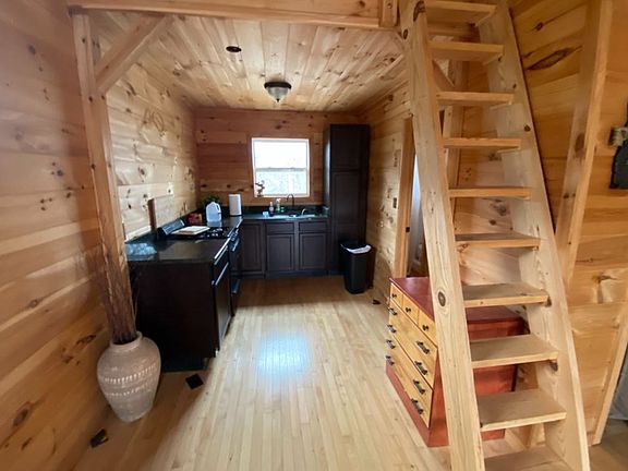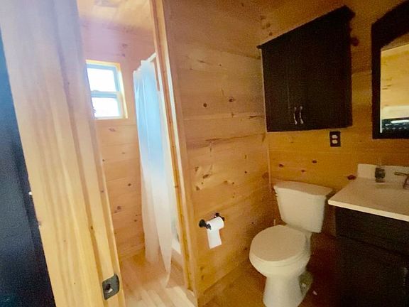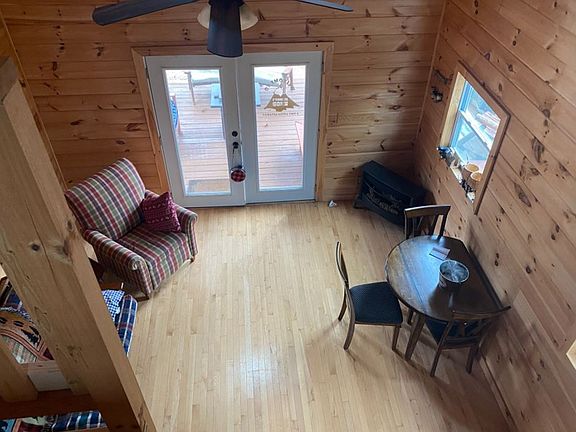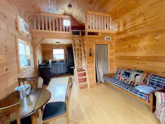 FURNISHED 1 loft bedroom and 1 bath cabin on lightly restricted 6.0 acres with good sized covered porch, shooting range, a separate guest room and storage. Looking to retreat to the mountains and unplug [you will have to as there is no electric to the cabin currently] for a few days or more? This set up may be perfect!