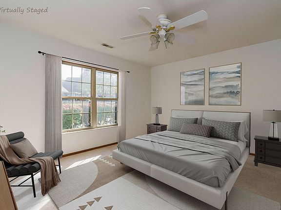 ALL NEW CARPET (new pics coming soon) LOVELY BRICK CONDO IN WORTHINGTON SCHOOLS, ideally located near shopping, dining, and with easy access to 270 - just minutes to Worthington and Polaris. TUCKED QUIETLY at the rear of the community with a landscaped island in front and green buffer to the side, this 3-BEDROOM, 3-FULL-BATH home offers a VAULTED GREAT ROOM COMBINING living, dining, and kitchen areas with wood floors and a cozy gas fireplace. The kitchen provides ample cabinetry and white appliances, with a convenient first-floor laundry located just off the kitchen. A PRIVATE THREE-SEASON ROOM off the dining area extends the living space. The FIRST-FLOOR OWNER'S SUITE features a walk-in closet and full bath with walk-in shower, and the GUEST SUITE OFFERS vaulted ceilings and an updated bath. Upstairs, a VERSATILE THIRD BEDROOM with full bath and walk-in closet is ideal for guests, a home office, media room, or gym. Additional highlights include an ATTACHED 2-CAR GARAGE with attic storage, a community pool, beautifully maintained grounds, and plenty of guest parking.