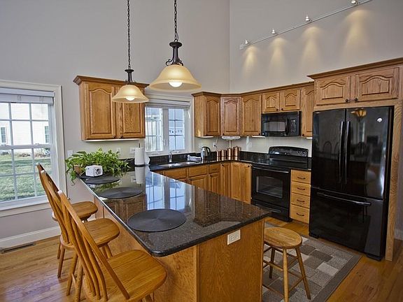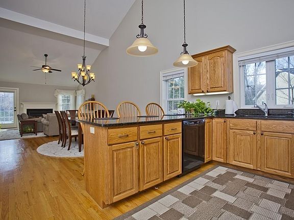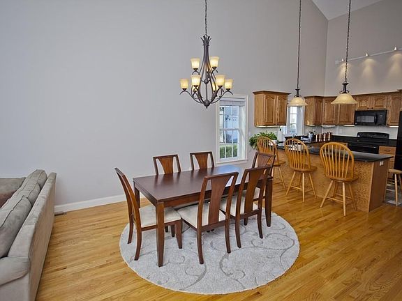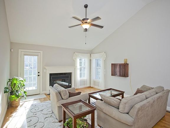 This stunning corner unit with southern exposure is just the condo for anyone who has dreamed of coming home to gleaming hardwood floors, crisp interior paint and lots of natural sunlight. The open floor plan welcomes you to a spacious living room with high ceilings and a beautiful, working fireplace. The eat-in kitchen, with appliances and granite countertops, along with the adjacent dining area offer an excellent space for entertaining. The master bedroom, with impressive tray ceiling, extra-large closet and large master bath, is positioned at the back of the complex so you can rest soundly. This condo also features a huge basement with high ceilings which could easily be finished for additional living area. Conveniences include laundry on the first floor, with washer and dryer to remain, attached garage with space for storage and a comfortable backyard with patio area.