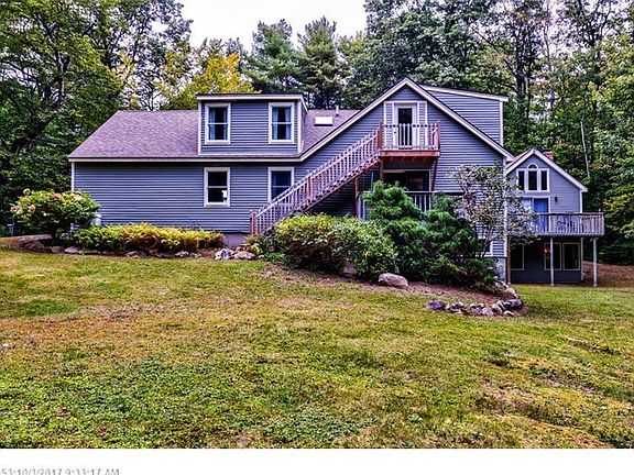Beautiful sunlit expanded custom cape tucked in the heart of the Sebago Lakes Region. Over 5,000 Sqft of living space on an 1.25 acre lot. 11+ rooms, 5+ bedrooms, 4 bathrooms, 2 car attached garage, 4 fireplaces, sunroom, multiple decks, skylights throughout. Features a master-suite w/cathedral ceilings, fireplace, sitting room, private deck. Lower level features a large bonus room w/spiral staircase access and fireplace. New appliances. In-law apartment or business space potential. Possibilities are endless!