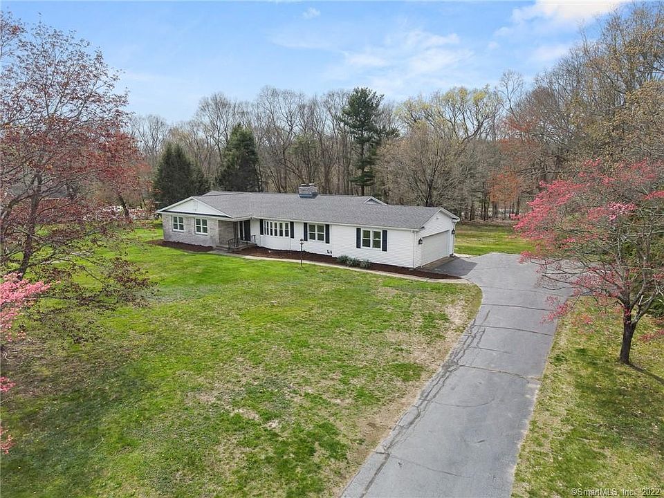 Dream Home Alert - This picturesque house has all the bells and whistles! Completely remodeled ranch, NEW ROOF, NEW SIDING, NEW WINDOWS. Home features 3-4 bedrooms 2.5 baths on 2.38 acres. As you pull into the driveway you are surrounded by open yard and a walkway leading to the covered front entry. Upon entering, the gleaming hardwood floors take you to the spacious living room with a grand fireplace great for those chilly winter nights. Private dining room for those who entertain or love formal gatherings. The kitchen is a SHOWSTOPPER, all new white cabinets (self closing), 10ft long island with waterfall edge on both sides and prep sink, new ss appliances, and black accents throughout make for a trendy vibe. Kitchen flows into a sitting or eat-in area with slider off to the deck which overlooks the property. Primary suite has two closets and private bath with tiled shower. If that wasn't enough, full basement with plenty of storage, 2 car garage, central air, and conveniently located to amenities and highway. "Prepare to be SOLD!"