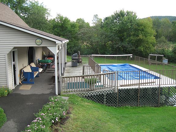 Look at this lovely 3 bedroom 2 bath home that offers plenty of room, central air and a full walk out basement. This home also boasts a beautiful 3/4 acre level lot with plenty of beautiful perennial gardens and a fantastic 3 car garage with an upstairs . You can also relax in the pool on those hot summer days or on your spindled wrap around rocking chair covered porch. this home is in the village limits yet feels so Country. Shop in nearby Binghamton (only 20 minutes away) Call for your appointment today!