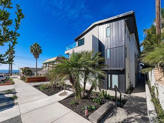 A Rare Coastal Gem — The Largest and Final Residence in an Exclusive Carlsbad Beachside Enclave. Just steps from the sand, 164 Cherry Avenue stands as the crown jewel of an intimate collection of three freestanding townhomes — the last and most spacious of the trio. This final offering is a hidden gem — a rare opportunity to own the premier residence in one of Carlsbad’s most coveted beach blocks. Designed to capture the essence of modern coastal living, this exceptional home blends timeless architecture, refined finishes, and effortless indoor-outdoor flow. Ideally located between San Diego and Los Angeles, Carlsbad offers the perfect balance of relaxed seaside charm and big-city convenience. With JSX and American Airlines service at nearby Palomar Airport, travel to and from your beach retreat is seamless. Step inside this 3-bedroom, 3.5-bath residence and discover an open-concept floor plan with no shared walls, abundant natural light, and elevated design throughout. The gourmet kitchen showcases Taj Mahal Quartzite countertops, custom tilework, premium appliances, and a generous center island — ideal for gatherings and entertaining. A sleek electric fireplace anchors the living space, which flows to a spacious balcony with a built-in Bull BBQ, perfect for sunset dining and ocean breezes. Upstairs, the primary suite frames panoramic ocean views and features a spa-caliber bathroom with a frameless glass shower, modern bidet, and designer porcelain tile. A flexible loft with built-in wine fridge adds versatility for a media room, office, or lounge. A ground-level en-suite bedroom offers the ideal guest retreat or potential ADU. Sustainable upgrades include solar panels and a durable metal roof, delivering energy efficiency and long-term value. A two-car garage, additional guest parking, and an outdoor shower complete this effortless coastal lifestyle. Located in one of North County San Diego’s most desirable neighborhoods, 164 Cherry Avenue is more than a home — it’s a front-row seat to the Carlsbad beach lifestyle. Whether you’re seeking a primary residence, vacation escape, or investment opportunity, this turnkey coastal retreat is a rare find. This is the third and final opportunity — don’t miss your chance to own the best of the best. Schedule your private showing today.