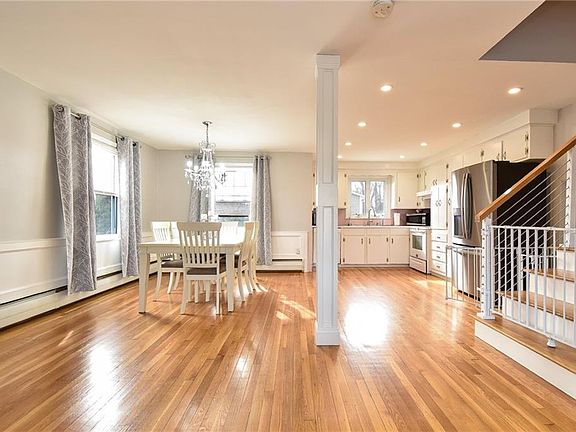 A true mid-century split-level house, this charming property welcomes its next owner. The entry foyer invites you into both the raised living room and the first floor family room. Hardwoods span the open layout of the main levels. The upper level includes three bedrooms and a full bathroom that are nicely separated from the main living space but not too far to keep an ear on activities. The primary bedroom has a connecting door to the main bathroom so you won’t have to suit up for late-night bathroom trips. Venture back down to the family room and you’ll find a spacious tiled area that has access to both the fenced yard and garage. Recent improvements such as a young roof, Navien heating system (installed November 2021) and lawn irrigation will save you from paying today’s inflated prices for upgrades. If you’ve never toured a split-level home, come and see why this rare layout is so coveted!