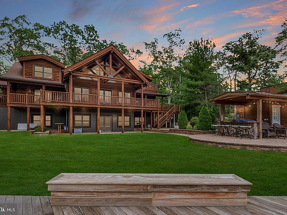 Gorgeous Lakefront Retreat, completed in 2006, this absolutely stunning, sprawling, custom crafted Log Cabin home has amazing detailing inside and out, and is located on the highly sought after lower Aetna lake in Medford Lakes! The Log Home has 3 stories each with views like no other. Featuring four bedrooms -- including two master suites (one on main level and one upstairs), 4.5 bathrooms, 30 ft ceilings, and hand-crafted wood doors, ceilings with exposed beams and wide plank hardwood floors throughout. The Living room will take your breath away with the 2 story Vaulted custom stone fireplace, wall of windows overlooking the beautiful lower Aetna lake & provides access to the expansive wrap around decking to enjoy your amazing lake views. Open concept at it~s best, the gourmet kitchen, including a Viking double oven, stainless appliances, & granite counters with spacious breakfast bar, is open to both the exquisite views and the dining area/living room. The attention to detailing continues at the staircase, with handmade log balusters and stairs. Upstairs, there are three more bedrooms including a second master suite. The second floor master suite has fabulous water views, a huge walk-in closet, and a luxurious bathroom. Down to the lower level, you~ll find a huge lower level which includes walk out access to the gorgeously landscaped grounds and lake access as well as a full size wet bar, Theater Room, gaming area, 2nd full kitchen, laundry, tons of storage and more! Step on outside to enjoy the fantastic outdoor amenities perfect for entertaining family and friends which includes an additional custom built lakeside cabana with fully functional wet bar! Additional Features include: Radiant heated flooring throughout, top of the line Levron Lighting Package throughout the entire home, prime Canoe Carnival location and so much more! If you're looking to move in with not a thing to do but enjoy one of the prettiest waterfront locations, this property is a must see! Welcome home to Medford Lakes Living!