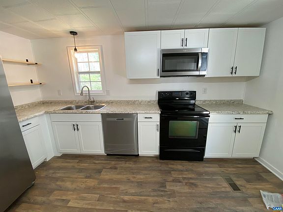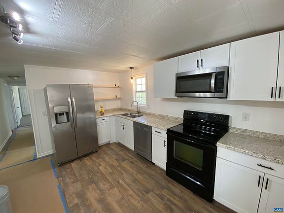 Fully remodeled home with large level lot, plenty of parking, and carport. New kitchen and bathroom, flooring, and paint. Brand new pex plumbing, water heater, appliances and heat pump. House has insulated double-pane windows, a metal roof, and propane fireplace. Outside there is a new wooden privacy fence, metal carport over a concrete slab, large gravel driveway with parking for multiple cars, and small storage shed in backyard. Panel is wired for easy generator hookup. Great location on a dead end street but quick access to 64. Less than 10 minutes to Zions crossroads and 25 minutes to Charlottesville.