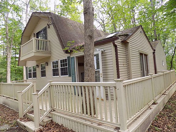 At The End Of A Cul De Sac Sits This Quaint Contemporary Style Home. Relax and Settle In, This Home Features Wrap Around Decking, Storage Shed, 3 Bedrooms With 2 Bathrooms, Wood Work Accents, Vaulted Ceilings, French Doors, Sky-lights, Fireplace in The Living-room, Master Bedroom On First Level Provides Access To The Enclosed Porch and Jacuzzi Tub, Plus Extra Bonus Sitting Room. The Remaining Bedrooms On The Second Level Share A Bathroom and 2 Have Private Balconies. This Is A Homepath property, Buyer Pays 2% Transfer Tax