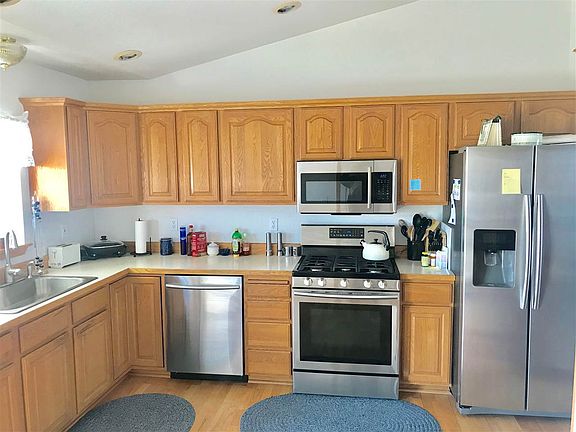 - KITCHEN: GARBAGE DISP, REFRIGERATOR, MICROWAVE, DISHWASHER, GAS RANGE, WOOD CABINETS, EAT IN KITCH