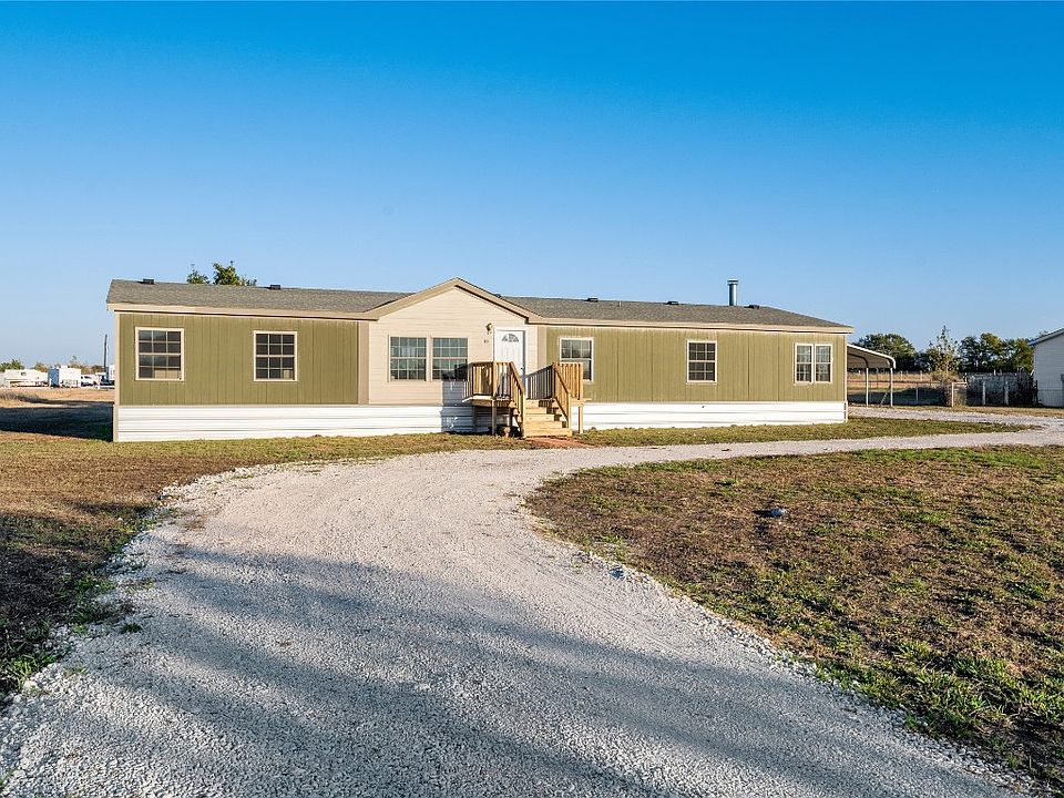 Have you been searching for a home that offers space inside and outside the home. Welcome to your new home at 164 Darwin! For the moment you pull into the driveway you are greeted by country living, meets easy access to major connecting highways. This double wide mobile home offers 4 bedrooms, 3 baths, not one but two living areas, a dining room, and a kitchen with plenty of space for multiple cooks. The expansive backyard boasts 2- wood decks and a 2- car port that is attached to detached-passthrough-oversized 1-car garage. Located in Grayson County, 30 miles north east of Mckinney and 60 miles northeast of Dallas, make the town of Whitewright your new small town. A rare opportunity. Early viewing is recommended.