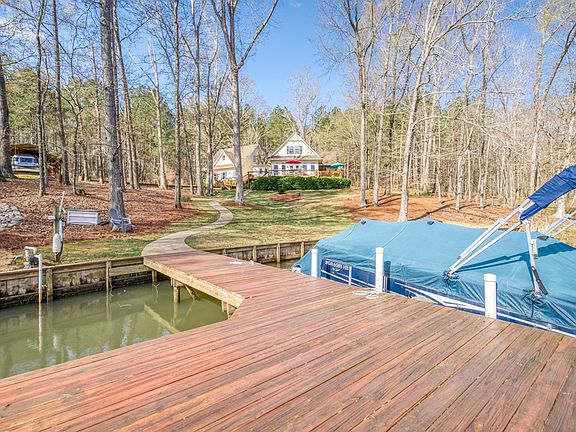 Lake Sinclair modified A-frame nestled on a huge corner lot with over 150 ft of shoreline offers a very private lakeside setting . Long views from a protected cove . Main house features an open concept with hardwood floors throughout all main living areas. Kitchen features custom cabinets, stainless steel appliances and a large island with breakfast bar. Screened porch located off the kitchen overlooking the lake. Master on main with lakeside doors that open to your wonderful wrap around porch. Master bath with double vanities, a whirlpool bath and a separate shower. 2 large guest rooms and a full bath are located upstairs. Ginormous detached garage that features a huge workshop and a guest apartment above the garage with a second full kitchen, family room, bedroom and a full bath.