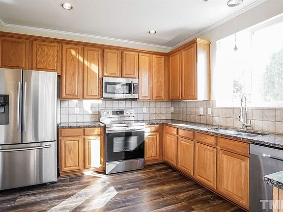 Built-in 2006, this Garner home offers stainless steel appliances, granite kitchen countertops, a walk-in master closet, a patio, and a two-car garage.