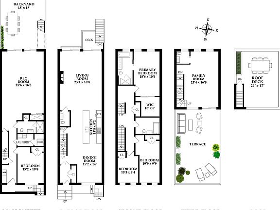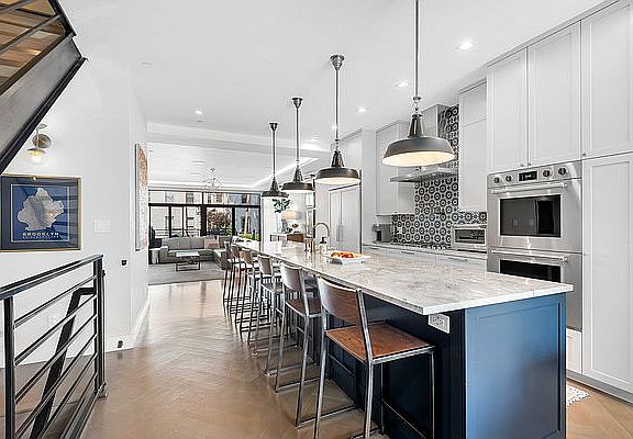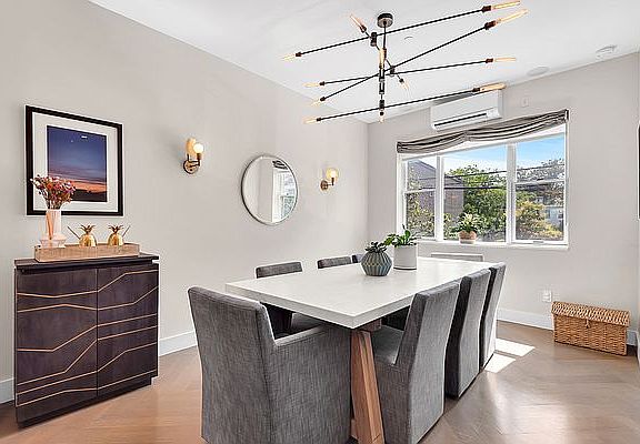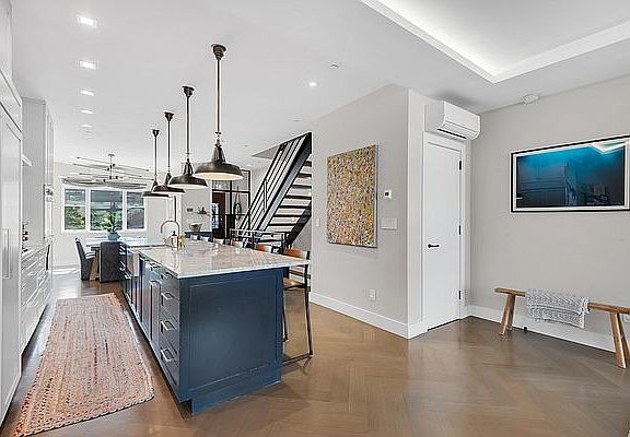 Welcome to 164 Diamond Street, a completely gut renovated Townhouse built by an owner, not a developer. You will immediately notice the difference in the quality of finish, and the extra steps taken to truly make this a home for the discerning occupant. Located in Greenpoint, is this extravagant 4.5 bedroom, 3 full bath home with an additional 2 half baths. This 3,600 square foot home is as close to a ground up brick construction with expansive luxurious living spaces throughout the home. Every aspect of the home was completely replaced, with a property extension and a basement dig-out to maximize the use of space. You will experience loft-like high ceilings, oversized windows and dramatic open tread staircases as you enter the home. Any chef will delight in the 18 foot custom marble countertop, custom kitchen cabinetry and appliances (Subzero, Wolf, Bosch) that will host hours of creative enjoyment in the heart of the home. Enjoy the extended living room with an extra large remote operated gas fireplace, with a half bath, as well as a completely separate dining room. You can flow right into the two leveled private outdoor garden oasis to enjoy hours of fun and relaxation. Speaking of entertaining, imagine a rooftop level that features two large private roof terraces, with city views. The entire lower level is an open design ideal for recreational activities, with a full bar, small kitchen, full bath, and even an extra bedroom//office space. One could access the garden from the lower level as well. The owner has spared no expense, each level has radiant heated floors throughout the living space and bathrooms, keeping you feeling cozy all year round. When it is time to retreat to your own spaces on the bedroom floors, imagine how peaceful it is to have your own lush en-suite bath and a separate bath on the same floor for the other bedroom. The primary bedroom's en-suite has a spa level experience with imported marble surrounding you in relaxation with both a soaking tub and an immersive shower. The bedroom floor has soaring 12 ft. ceilings throughout, and each closet is a custom built closet including the massive linen closet in the hallway. The backyard has grass and is built with a richly hued IPE wood fence and elegantly lit for your evening gathering. The quality and care built into this home is further revealed upon your visit in detail so you can experience the effort and thoughtful construction that has created the perfect townhouse in one of the hottest towns of Brooklyn today. All throughout the home you will find surround sound built into the walls and ceiling. The entire home has radiant heated floors powered by a high efficiency boiler. If this isn't enough, there is also a bike and additional storage space as well. This is arguably the best rental listing to ever hit the market in Greenpoint, so make your appointment today.