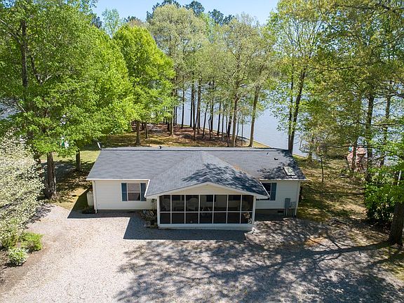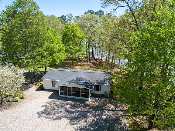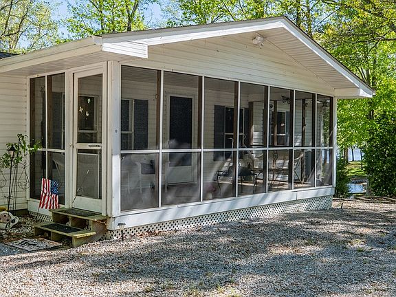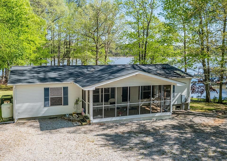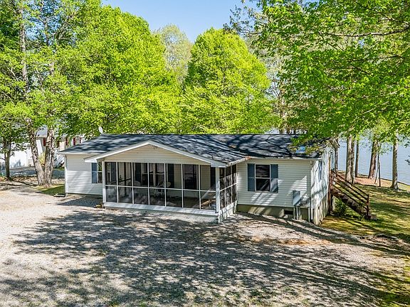 Located on a cove close to the main lake, you'll find this beautiful well maintained, move in ready home. Everything you need in a lake home, you will find here! Open floor plan with master bedroom on one side and 2 additional bedrooms on the other side. Bathrooms have been upgraded. Relaxing screened porch on front and nice lakeside deck on back to enjoy chilling & grilling with family & friends. A short walk to the lake and you'll find a nice bulkheaded shoreline & a boathouse which offers great water depth for swimming, boating or just plain relaxing! After a long day on the lake, enjoy the outdoor shower located at the deck by the house & then relax in the hot tub on the deck. There's also a wired storage building to put your outdoor things in. Propane heater in living room works great if you lose power! Free standing fireplace unit in living room does not convey.
