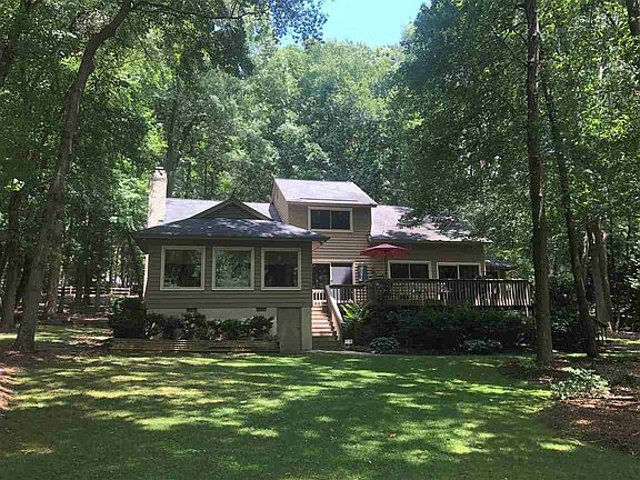 Beautiful Contemporary-Style Home on Calhoun Lake! Private, wooded lot .96 Acres. Lake Living at its Best! Open floor plan w/Vaulted Ceilings. Master is on the main level with lake views, doors to deck. 2 other bedrooms and bonus room upstairs. Sunroom in back overlooks wooded lot and lake, and deck wraps around the rest of the rear of the home. Kitchen and Eat-In Area also have great views of lake. Kitchen has been updated, stainless steel appliances and granite tile countertops. HW floors throughout most of main level. 2 new HVAC units, roof is 8 years old. Stationary Dock. Don't miss this opportunity to own a great lakefront property!