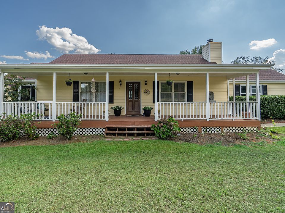 Must see this beautiful ranch home on 2.63+- acres. The large front porch welcomes you into this spacious ranch with a Vaulted great room with a brick fireplace. Large eat in kitchen has wood stained cabinetry and Dining area. All bedrooms are on one level, with a spacious, owner's suite with treyed ceiling and a master bathroom with tub/shower. combo Guest bedroom and full bathroom and an additional room that is currently the home office with French doors can be a third bedroom. Side entry Two car garage. Covered back porch. Fenced in back.