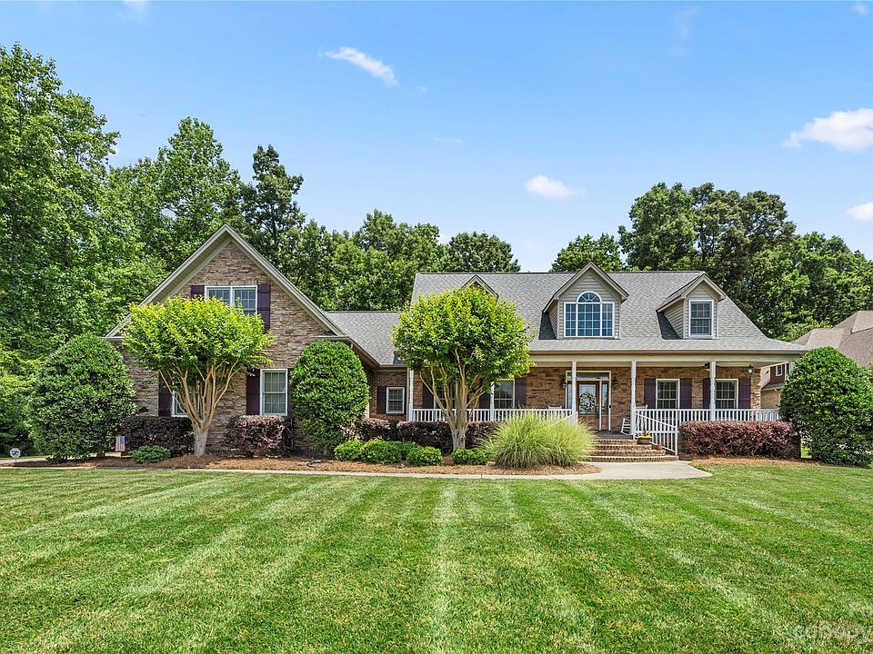 Lake Wylie living at its finest! This custom built 3 bedroom 2.5 bath with 3 car garage is sitting on over an acre and is waiting for you to call it home! Two story living room lets in lots of natural light with upstairs catwalk overlooking living room. The main floor also features primary bed with tray ceiling and French doors opening to rear porch, formal dining room, butler pantry, laundry room and gourmet kitchen including granite counters and wall ovens (new stainless-steel see-through refrigerator included)! Covered front and rear porch with Trex decking and a portion of the rear being screened. Let the hickory wood floors guide you to one of the two staircases leading upstairs. Upstairs you will find two more bedrooms and a HUGE bonus room. Home was built with multiple upgrades that include insulated garage doors, gas logs with marble surround, whole home surge protector, in ground irrigation, Trex decking, gutter guards, new dishwasher and Trane HVAC!
