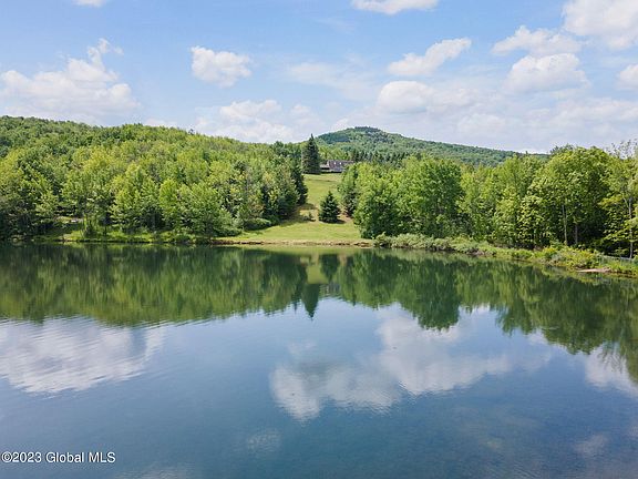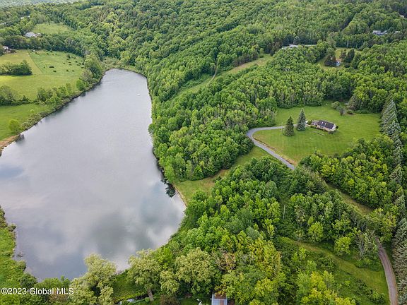 Waterfront Chalet with complete privacy and seclusion on 6.74 ac. Nestled hillside is this meticulously maintained 3-bed, 2-bath home overlooking Fancher Pond. Open floor plan with abundance of natural light. Second floor master suite. Gorgeous views from every window. Relax on the covered front porch. 118 feet of water frontage. No better place to spend your long summer days with family and friends.