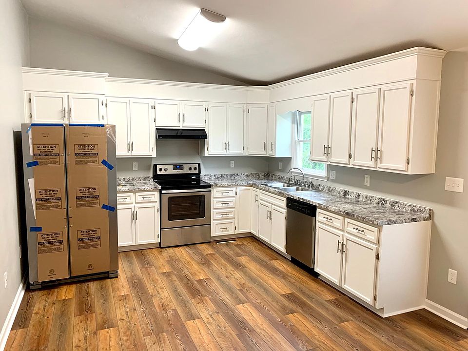 All brick ranch in Botetourt with a two car garage, nice yard with deck, vaulted ceilings, a huge kitchen and eating area, and a finished basement with fireplace. This home has been totally remodeled and features brand new flooring throughout, modern lighting, fresh paint, new counter-tops & appliances and much much more. Tenant pays all utilities and takes care of yard maintenance