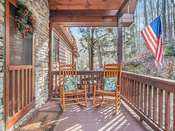 Feel your worries disappear as you drive up to your mountain cabin with long range views. 3 bedrooms with King beds and 2 master suites. 2nd floor master has catherdral ceiling with private balcony. Fireplace on main and in lower level.After a day at the lake of hiking, relax in a cedar lined, hand made Finnish dry sauna or the 6 person hot tub. Screened porch to enjoy barbeques with your family. Paved private road and driveway. 1.5 miles to Morganton Point to boat, kayak oir swim. Great Wi-fi. Close to everything but quiet and private. This house will not last.,