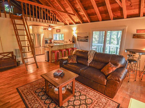 Amazing views from this cozy Norris Lake cabin. This recently renovated 1 bedroom with loft cabin is situated on a gently sloping lot with year around water and just 8 minutes off of I-75. The main bedroom offers a full bed, loft has two twin beds, and there is also a sleeper sofa on the main floor. The living area and eat in kitchen lead out to a nice porch overlooking the private boat dock. The private dock is just a few steps away from the cabin down a gradual path. The kitchen has been newly renovated, has newer appliances, and comes equipped with all cookware, and silverware. There are 4 bar stools at the kitchen counter and a tall table with seating for 4 off the kitchen. WiFi and cable are also provided. Lots of storage crawl space. Easy walk to the lake with new stairs.