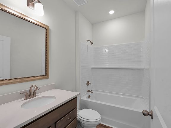 The Bradley II features 3,005 square feet of comfortable living space, thoughtfully designed with four bedrooms and three bathrooms. Several exterior elevations (A, B, B6, C, D, D4) are available, providing options for brick, stone, and siding combinations to personalize your home's curb appeal. The main level features an open floor plan, seamlessly connecting the spacious living room, dining area, and kitchen. A convenient den and powder room complete the main level. The expansive owner's suite is privately situated on the main floor, complete with a walk-in closet and an en-suite bathroom. Upstairs, you'll find three additional generously sized bedrooms that share a full bathroom, providing ample space for family members or guests. Optional upgrades enhance the already impressive features: a covered or screened patio extends your living space outdoors; a gas fireplace adds warmth and ambiance to the living room; and a kitchen island increases workspace and storage. An optional fifth bedroom or office provides extra versatility. The Bradley II effortlessly combines open living with private retreats, creating a home perfect for modern family living.