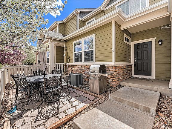 Welcome home to this charming 2-bedroom, 2.5 bathroom townhome, where modern elegance meets convenience. Step into a thoughtfully designed space that offers the epitome of comfort and functionality. The main floor seamlessly integrates a cozy living area with a gas fireplace and boasts a gourmet kitchen with s/s appliances with a gas range, making it an ideal spot for relaxation or entertaining guests. Natural light floods the interior through large windows, creating a bright and inviting atmosphere throughout. Ascend the staircase to discover two spacious bedrooms, each accompanied by its own ensuite bathroom for ultimate privacy and convenience. The owners' ensuite bathroom features a 5pc bathroom with a soaking tub and large walk in closet. The laundry room is tucked between the 2 suites. There is a cute fenced in front porch. Hot water heater is newer and roof was just replaced. See everything Erie has to offer with its small town feel, majestic mountain views, 63,000sf community center and 20,000sf community Library! Short distance to Old Town, shopping/dining, trails and parks.