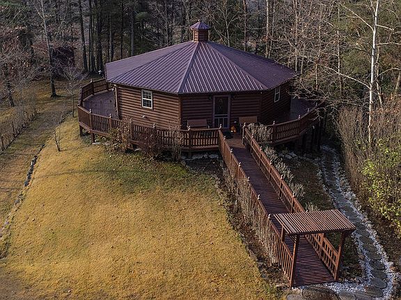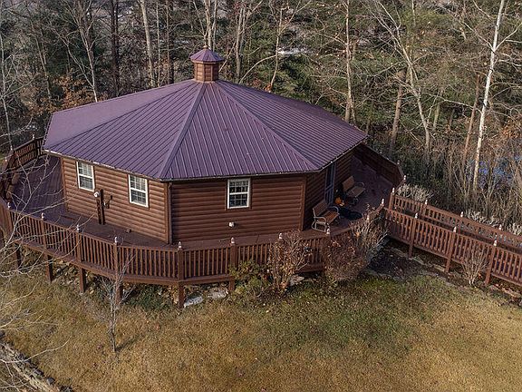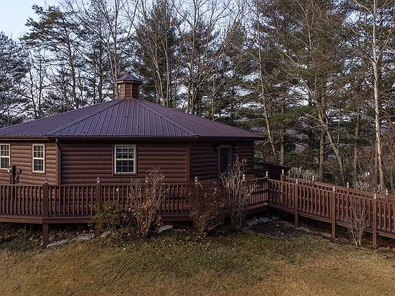 Unique custom octagon home sitting o 2.84 scenic wooded acres located only minutes from I-75 and Berea. Fully set up for two families with kitchens, bedrooms and baths on each level if needed. Two storage buildings. Wrap around deck. Enjoy wildlife and seclusion on this beautiful property.
