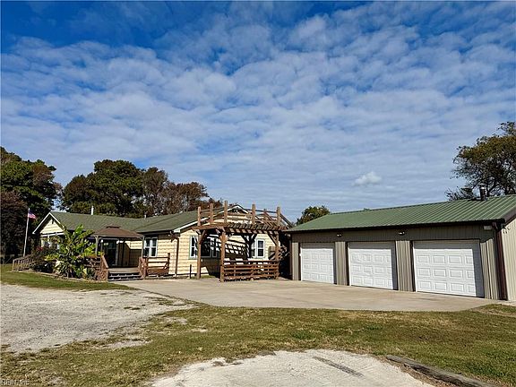 Beautiful waterfront property on 3 acres with boat ramp and dock. Spacious cottage home with 4 bedrooms and 2 full baths. Huge 3-car detached garage with metal roof. A commercial freezer is on the property for the fisherman buyer. The 2-story sun deck has awesome views of the Currituck Sound. Additional building with 2 rooms and another bathroom (as-is) but could be used for extra storage space. The cottage has a large sunroom with water views, a large open kitchen with all appliances, island, and pantry space, a dining area, a large family room with views, a primary bathroom with a walk-in closet and bathroom, 3 more nice-sized bedrooms, and a large hall bathroom. Beautiful location!