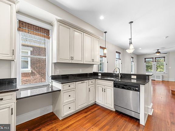 Welcome to 164 Lawnside Ave, in the charming town of Collingswood, NJ! This lovingly maintained home features original hardwood floors, newer carpeting in the bedrooms, and a spacious kitchen perfect for any cooking enthusiast. The generously sized porch offers endless possibilities for outdoor living and relaxation. As you step through the original front door with its beautiful glass window, you are welcomed into an open-concept living space that flows seamlessly from the living room to the dining area and kitchen. A convenient half bath is located near the back door. The kitchen is a highlight, boasting granite countertops, a breakfast bar, a built-in desk area, and stainless steel appliances. You'll find three comfortable bedrooms and a full bathroom with a tub/shower combo upstairs. The attic stairs are located outside of the primary bedroom. The attic space is floored and has great potential to be finished as a possible bedroom, home office or extra recreational area. The basement includes the laundry area and offers walk-up access to the backyard. The backyard is the perfect spot for outdoor activities and off street parking. The property line extends past the storage shed, making this the longest property on the block. Plus, this home is within walking distance of the vibrant downtown area—a wonderful bonus!