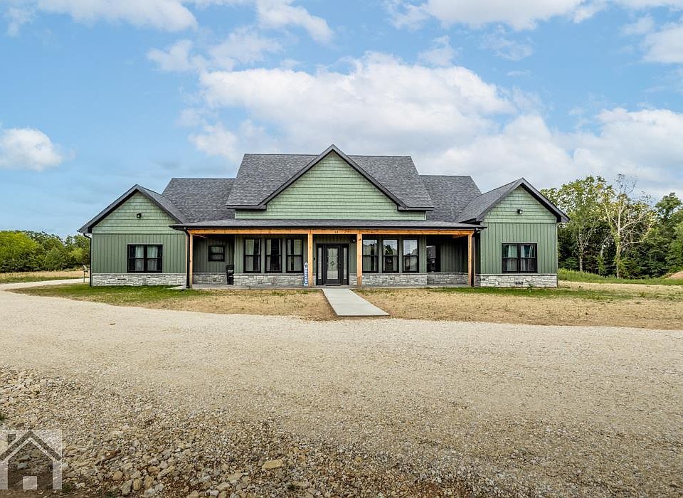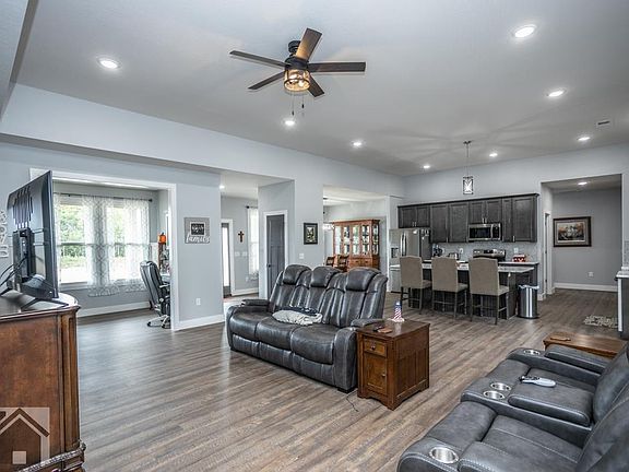 Country living in City Limits! 51+ acres w/custom built beauty! Dual system heating. Oversized 45x29 garage w/trusses. Exterior vinyl, stucco, board & batten & shaker shingles, plus arch. shingled roof. Open concept, 11’ ceilings, comm grade LVP, custom cabinets w/lighting, quartz countertops, marble backsplash, farm sink, 7x5 pantry, large island w/quartz & electric, power vent gas water heater, Quaker windows, covered front porch, back patio w/fireplace. Master bath w/4x7 tiled shower, 8 shower heads, 2 large vanities, 5x14 WIC. Laundry w/cabinets & sink. Bullnose corners. Lighted attic access. 2x6 construction. Onyx tops in all bathrooms. Leaded glass front door w/2 side lights. Seller requests proof of funds to listing agent before showing. 2433 finished sq ft/measurements approx. Ring doorbell present-conversations can be overheard. 2 ponds, at least 3 caves & multiple city utility hookups for sewer/water/electric from prior owner subdivision survey. Duplicate listing of 23040076.