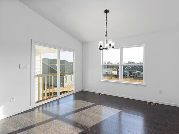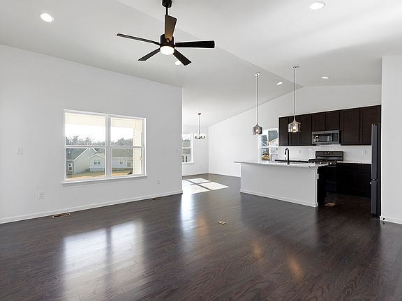 This McBride Homes new construction Aspen II Ranch model features 3 bedroom 2 baths and will be ready in spring 2023! Great open floorplan with vaulted ceilings, 6ft windows, and beautiful wood laminate flooring throughout main living areas. Covered future back patio area with sliding glass doors off dining area. Kitchen features large island with flush countertop for breakfast bar, dark 42in tall cabinets, stainless steel GE appliances, and a large walk in pantry. The master suite features large window, dual closets including one large walk in closet, and the private master bath features an adult height double sink vanity and walk-in shower. Ceiling fan in family room and pre wires for ceiling fans in bedrooms and patio area. Main floor laundry room. Liberty will feature a private walking trail with lake and gazebo with acres of beautiful common ground. Enjoy peace of mind with McBride Homes' 10 year builders warranty and incredible customer service! Similar Photos Home Shown.