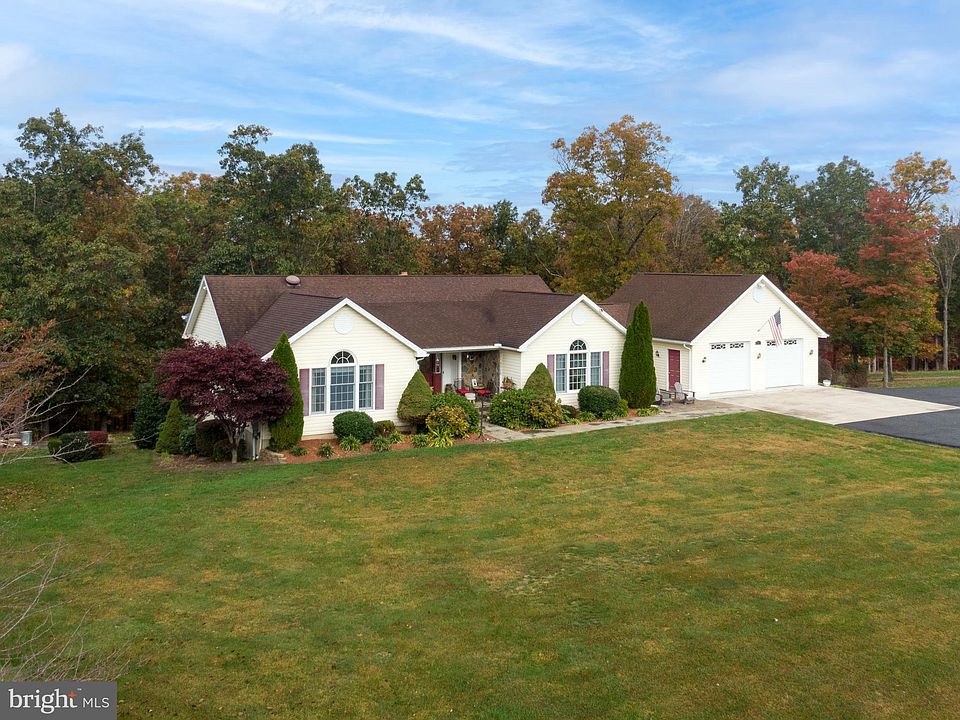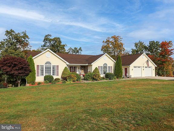 Beautiful and well-maintained custom rancher on 3+ ac just 15 min from Winchester! Less than 1 mile to VA boarder. Hardwood, exotic wood, & ceramic tile flooring on the main level. Quality you can see. Granite countertops in the kitchen with beautiful cabinets and soft-close doors, and breakfast bar. Extra cabinetry and desk working spot extend into dining area. Kitchen appliances are only 2-3 years old. French doors from the living room lead to the screened porch with ceiling fan and rear sun deck that can also be accessed from an 11 ft sliding glass door in the dining area--great for BBQing and entertaining. Crown molding runs throughout the home and custom chair rail decorates the walls in the formal dining room. The oversized windows allow for the most spectacular views throughout the year. The landscaped front entrance includes a flagstone sidewalk and stoned front entry way. There are 3 bedrooms, with the primary bedroom featuring a vaulted ceiling and walk-in closet, along with the attached primary bath with a separate jetted tub and shower. There are an additional full bathroom and 1/2 bath on main level. Extensive closets and storage areas abound. The partially finished walkout basement has two additional rooms that can be used for an office space or play area and a half-bath that can be converted to a full bath. The family room in the basement has plenty of natural light and walks out through Pella French doors to a concrete patio that is also partially covered. The ducted wood stove can heat the home, and there is a heat pump as well with propane backup. High-speed internet from Frontier. The yard has numerous perennials and a 25'x25' fenced garden. The oversized two-car garage has custom built shelving and comes equipped with separate hook-up for a house generator. HOA is $200/year. $3,000 closing cost credit with acceptable offer.